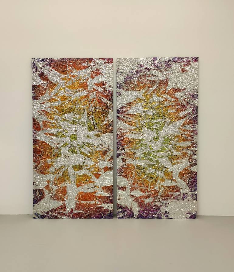 The free use of his own resources is the fundamental disposition in which Christoph Robausch's works are created. Standing outside the traditional art world, Robausch ventures into the open and unsupported realm. Without fanfare, solely from the inherent potential, his sculptures, wall objects, and relief-like panel paintings emerge. For his metal sculptures and wall objects, Robausch uses aluminum components of a thickness that he can still shape by hand. He enjoys reworking earlier pieces, deforming and retuning them. The open nature of the possible is also the driving force behind his translation of physical works into digital, dynamic worlds. Currently, with his series "Future Origin - Oraculum," he is rediscovering his initial working method, strongly influenced by the inherent qualities of the materials. The unpredictable immediacy shines through the works of this enigmatic series. For these flat sculptures on canvas, Robausch uses a highly heat-resistant, synthetic wax. It essentially petrifies as it solidifies on the raw canvas. For further surface treatment – both canvas and metal – ink, iron rust, and copper patina are preferred due to their vibrancy and unpredictability.