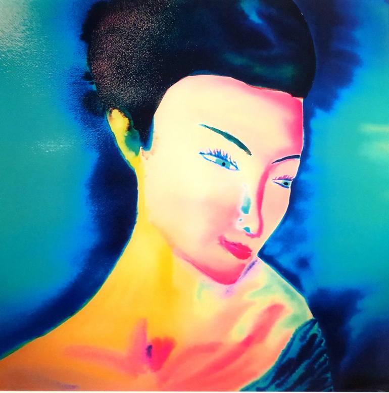 The artist used color inks here and it is from a living model that she designed this geisha in watercolor and ink put on plexiglass. The lines are very simple, the proportions are exceptional, the impression on plexiglass gives the work a modern and contemporary side, the plexiglass also brings out ...