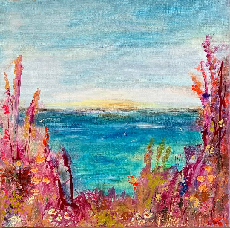 Colorful atmospheric landscape which brings life and dynamics to your interior. Unique work of art in free forms that is more than just a painting. Enthusiasts are inspired to create personal cozy corners at home. For example, in combination with other beloved objects such as vases, statues, candles...