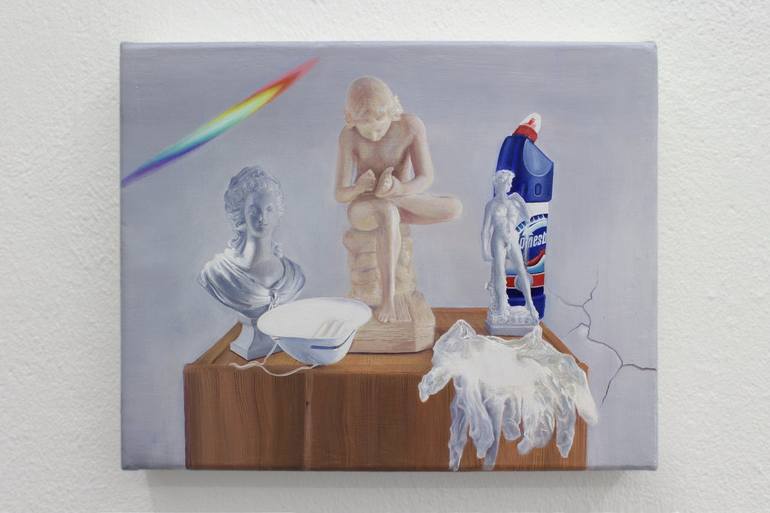 Elio Ticca (Italy, 1988) is an artist based in Brussels, Belgium. His main media are painting and sculpture, used to inquire the relations between historic and contemporary artistic languages, in order to give form to ironical and unpredictable visual dialogues. The outcomes seem to alter the matrix, in order to raise questions of authenticity and fictionality. His work reinterprets conceptual milestones such as autography and originality, through a sophisticated process of camouflage and creation. The final goal of his search is to question affect is transmitted through image-making and cultural memory.