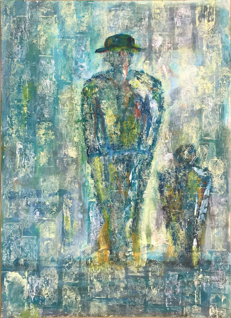 This painting is inspired by the beauty of fatherhood and the special bond between a father and his kid. The act of a man spending time with his son and guiding him through life is a heartwarming and meaningful experience that many people can relate to. When viewers look at my artwork, they should ...
