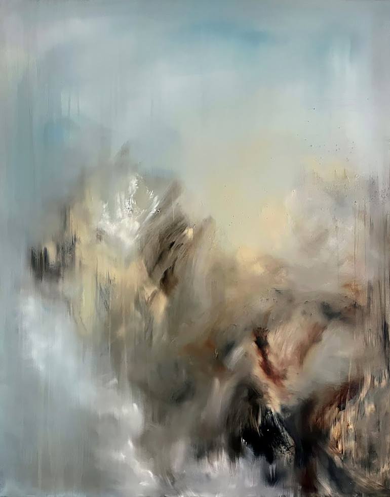 My art is primarily organic abstraction, often portraying surreal and softened landscapes. A dream or nebulous quality marks both transitions and compositions. This is derived from a mode of life, which is rooted in inner stillness. I lived in South West France, surrounded by tranquil forests and now live in Sussex. That quietness of being is what I strive for in my studio. I paint without distraction, so that I can fully connect with what I am creating. The more I can remove myself from the process, the better the work. I only paint in oils as they give such wonderful luminosity and I prefer large scale pieces for freedom of mind.