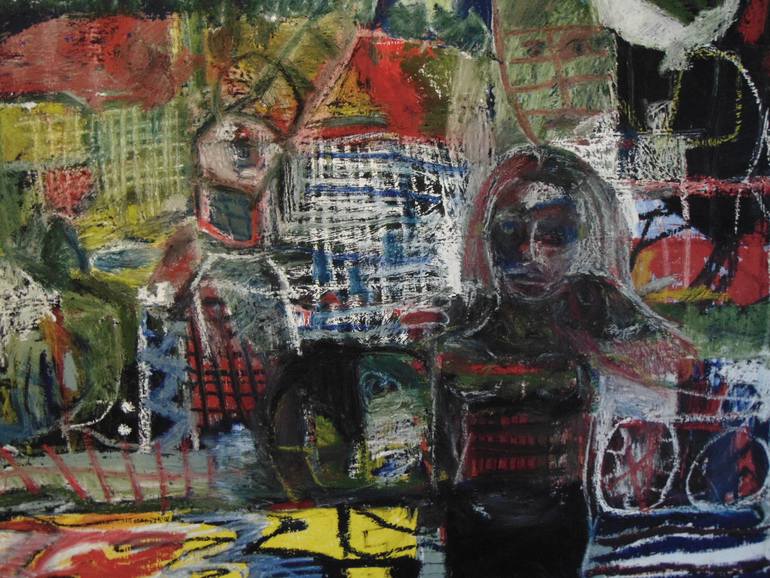 I like 90's New York, painting. This is the way it feels to be a marginalized minority because of gentrification of developing nation. I tried acrylic paint but it doesn't have the vibrancy. This is like engraving with fat if there was such a technique.
