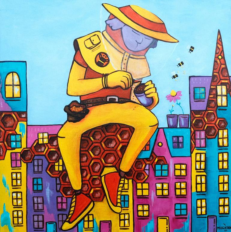 Joanna Mugford alias Mugaska is a Polish expat living in Copenhagen with her British husband, two teenage sons and a mix breed rescue dog. Mugaska’s art tells stories about the here and now, inspired by nature and the good side of life with an increasing focus on climate change and sustainability. By creating a catchy colorful art Joanna wants to send a message and inspire a more eco-conscious world, where sustainable is not only a trendy adjective. Joanna has a masters degree in Finance and 12 year’s experience in that area. In 2016, she decided to change her career to match it with her lifelong passion for art. Currently she is working as a full time artist using mainly acrylics or digital art.