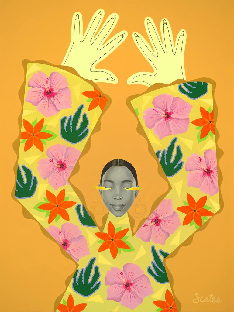 Shannon Scates (b. 1986, Washington, D.C.) was raised in Prince George’s (P.G.) County, Maryland. Her family culture provided the foundation for the artist she has become. There was pride in their community, pride in their history, and endless stories of the realities of their Black experience. Her art is meant to be a visual celebration intended to uplift the viewer. She “speaks life through art” and desires to use her creative abilities to heal and inspire. She has exhibited in numerous group shows including Black Beyond Belonging at Cal Poly San Luis Obispo, AJOYO in London, in 2020. She had her first solo show in 2021, titled ‘Today Is a Great Day to Be You’, in Baltimore, Maryland. Shannon’s work was also exhibited and auctioned at the 2022 Wearable Art Gala, hosted by Richard and Tina Lawson. Shannon currently lives and works in Los Angeles, California