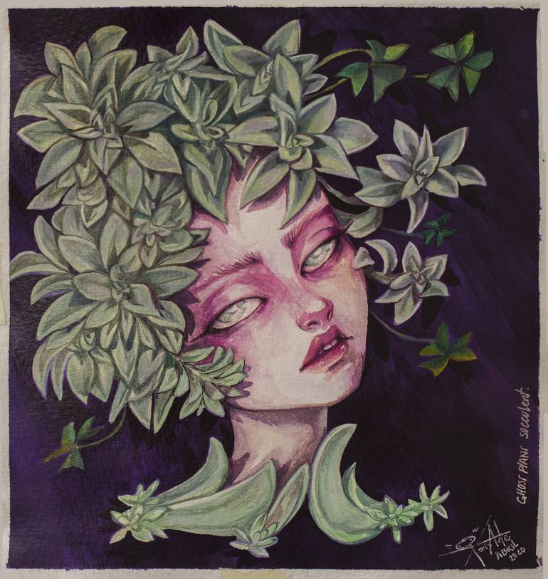 Giving my window mates a face makes me feel less crazy to behold them these days locked up and away from some forest or garden bigger than my small collection of succulents and herbs. . . This is my Ghost plant succulent portrayed with #gouache, and during all these days my roommate while painting h...