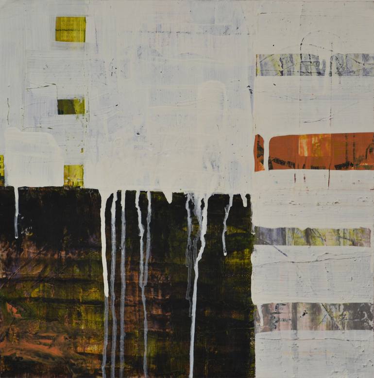 I am influenced by the layering and texture of eroded surfaces. These newer works are inspired the white washing over eroded surfaces that I have seen on my travels to a small fishing town in Portugal.
