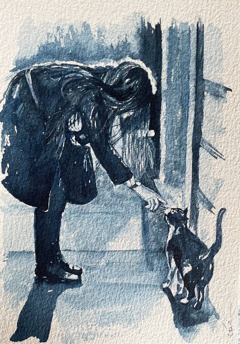 The "Girls" series offers a subtle glimpse into everyday moments of feminine life. Painted with Winsor & Newton watercolor on 100% cotton paper, this work, I portray women through monochromatic watercolors, inviting the viewer to place herself in the position of the women depicted. This series h...
