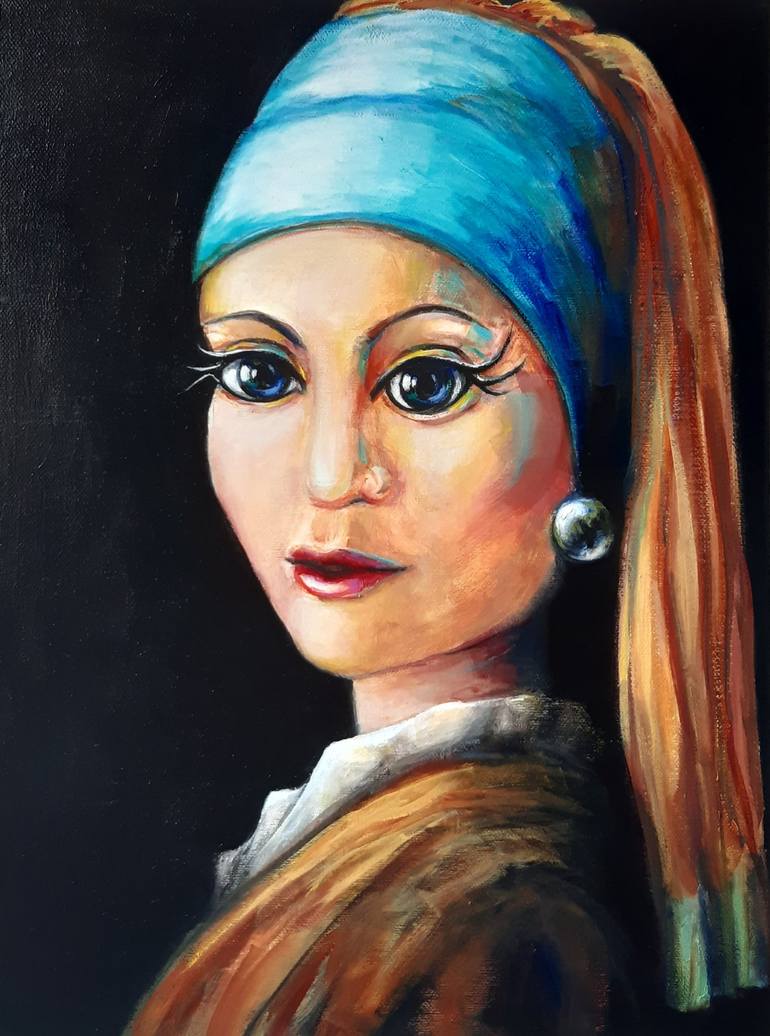 "Girl with a Pearl Earring" inspired me. She is so mysterious. Painting 30×40 cm , acrylic on stretched canvas