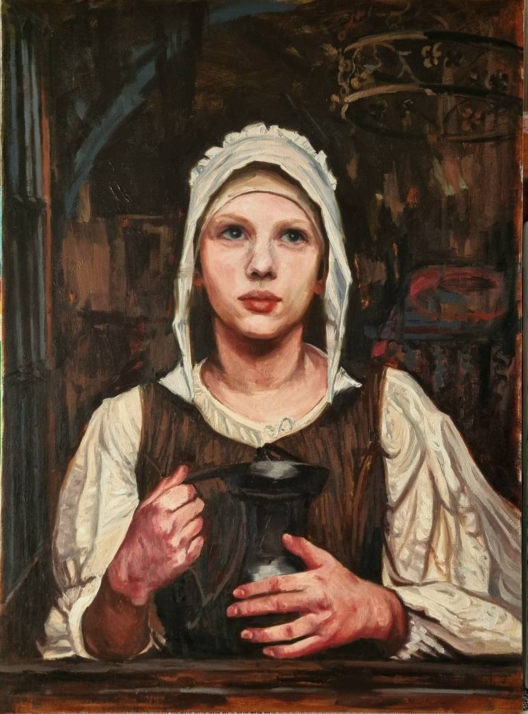 This painting is about hope for short. It is actually a scene from the movie "Girl with a pearl earring". It looks like she is saying "Let us still have hope even in this time of chaos and anxiety." There had always been madness, disappointment, skepticism, resignation in human history. But neverthe...
