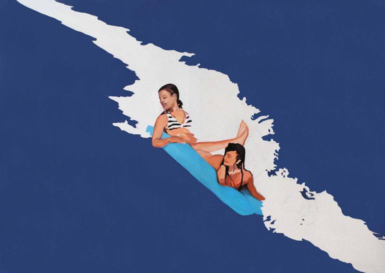 Painting titled Girls and a wave, 2008, oil on canvas, 100x145cm
