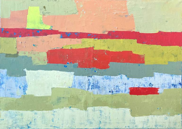 In this painting, my fascination lay in capturing an ascending motion, where the stratified composition appears to undulate upwards, progressively shedding its rigid arrangement. Moreover, as astutely pointed out by my wife, the artwork might evoke the hues of an autumnal marsh.