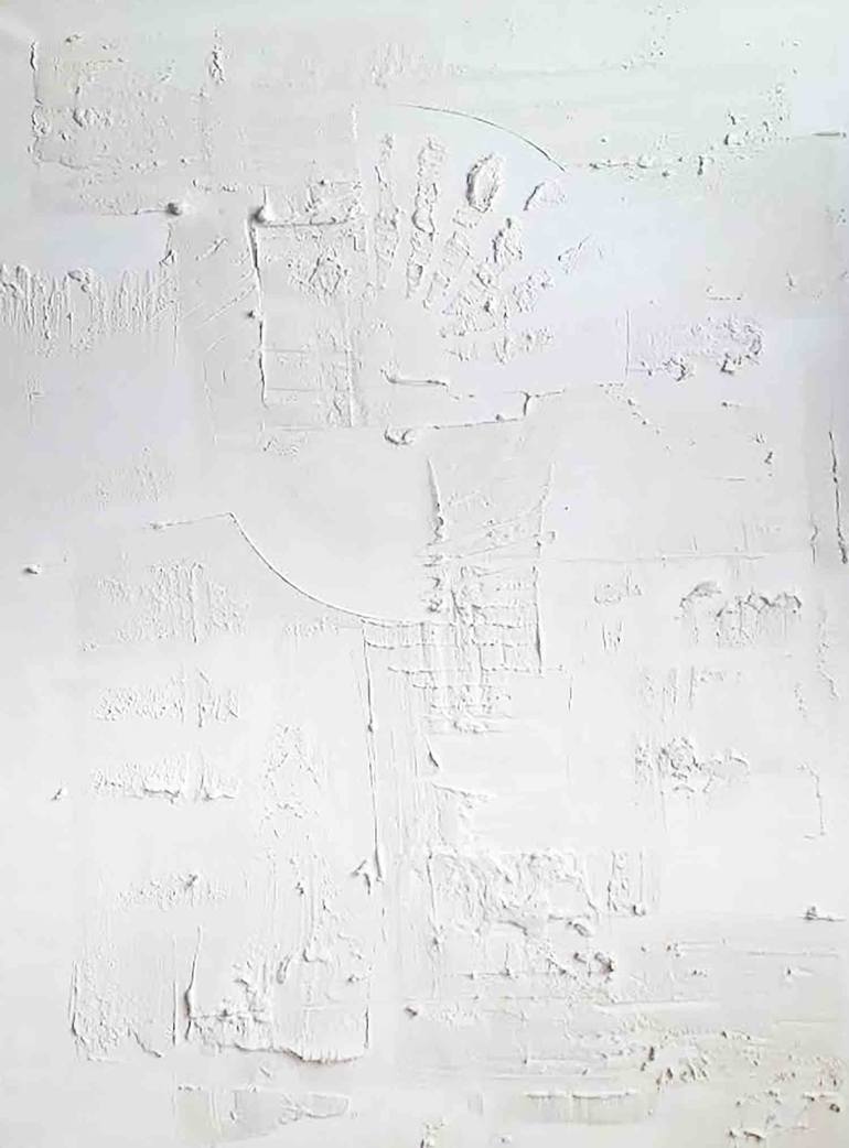 This piece was created during winter of 2016 in Chicago about one month after Paris Global Warming Conference. I decided to name it "Global Warning" since the result of the conference was not at all positive for our planet. Material used is joint compound which represents rural landscape.
