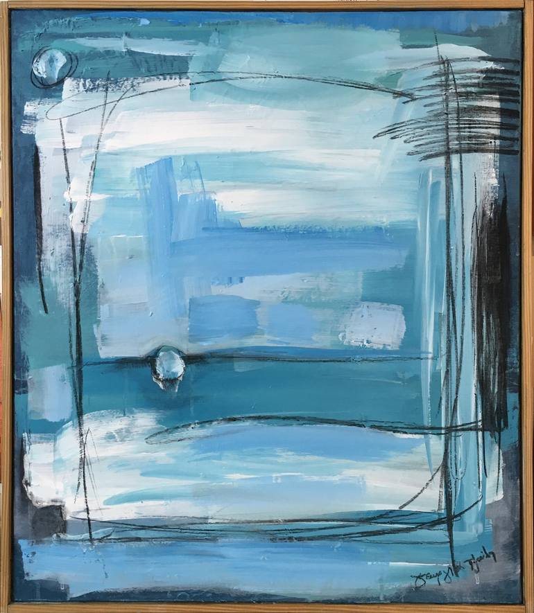 The light blue of the sky and the sea and the warm sun of my country has inspired me to paint this painting. The painting is acrylics and charcoal on canvas and it is roughly framed. It is ready to hang. The dimensions withour the frame is 60,5 x 70 x 2 cm and with the frame is 62,5 x 72 x 3mm. Si...