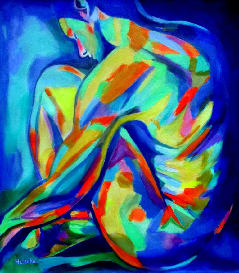 Abstract seated nude male figure painting Medium: Acrylic on canvas Size: 20.6x24 in.