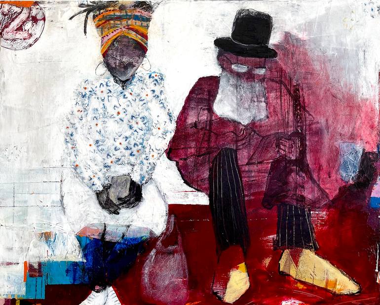 I’m Scottish. I live in Harlem, NYC. I believe it’s critical and necessary to embrace cultural diversity. I’m passionate about equality. I’m compelled by the underdog. The courage of “social outcasts”, who walk their own walk, moves me. When I moved to Harlem in 2006, I felt an affinity with the neighborhood and I quickly realized that my white working class upbringing had similarities in culture and feel, but the fact that I can walk out the door wearing my white skin, gives me an immediate privilege that I’m still working on fully understanding. I work with mixed media to build many layers, creating a history and opposition, using a multitude of tools to enable me to relinquish control. I've had successful 30 year career that spanned being a textile designer, art director and licensing artist. In April 2020, my dad died of COVID-19 in Scotland. Here in lockdown in NYC, I was lying on my couch grief stricken about my dad while also feeling completely outraged yet impotent about the systemic racism and white supremacist rhetoric gathering momentum in this country. On one of those days I heard a wee voice inside calling me to hang some paintings I had created in 2019. Since then, I've been creating my grief, joy, anger, sorrow and hope.