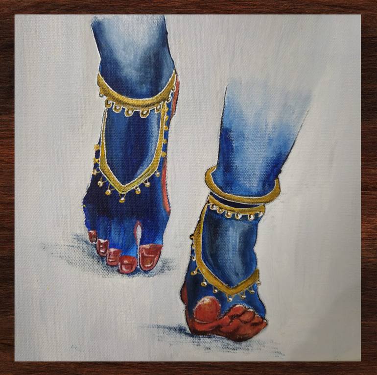 This artwork, titled Goddess Durga Feet, is inspired by the divine essence and cultural significance of Goddess Durga in Indian tradition. It portrays the graceful feet of the goddess, adorned with intricate anklets and vibrant red hues, symbolizing power, spirituality, and protection. The choice o...