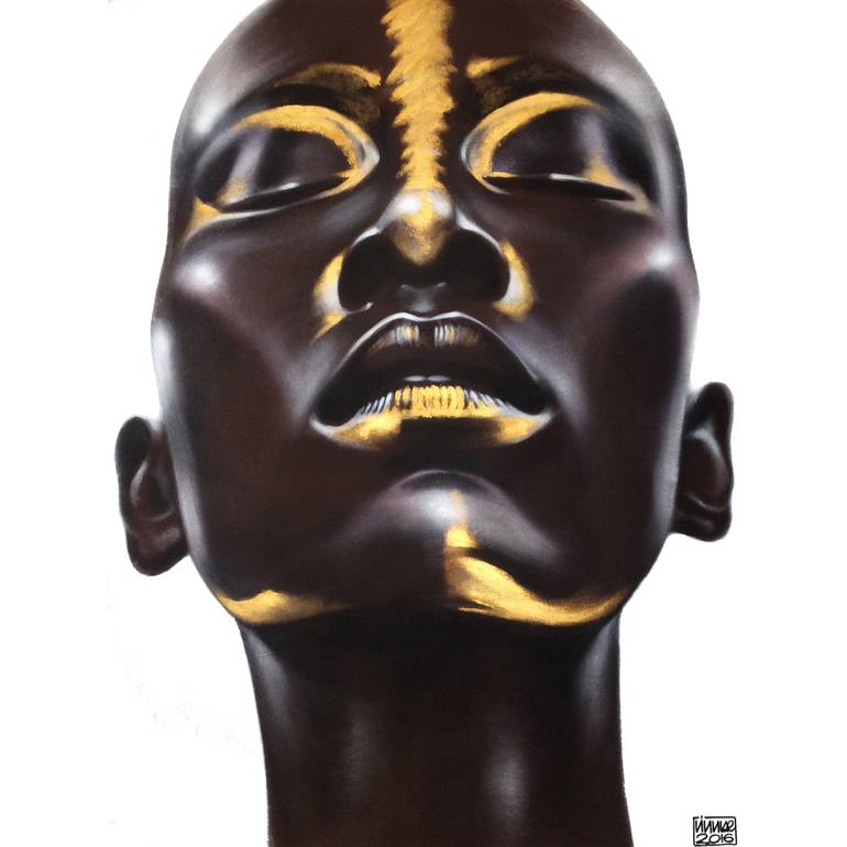 Philippe Vignal, French artist born in Mozambique, draws his inspiration from his childhood memories steeped by faces of women and men, powerful, wild and proud. On a canvas stretched as leather, black color covers the entire frame. And then, brushstrokes of white bring out forms and lights, strength and sensuality! A perfectionist work that highlights details, shadows and lights, the faces and bodies seem almost alive. The hyper- realistic faces and nudes are the main topics that fascinate and inspire him, revealed through his aesthetic and technic that brings you in his personal universe.Visual shock and meeting face to face... that attracts and challenges at the same time