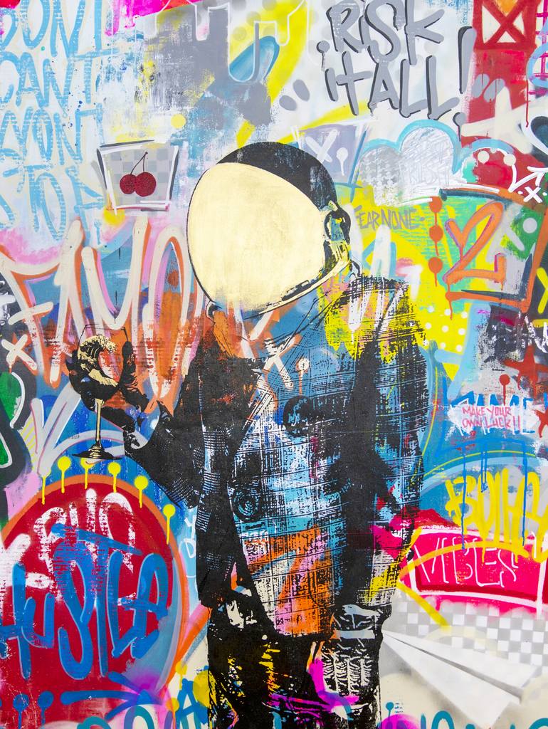 Titled “Gold Digger: ALL EBITDA” this mix-media painting is inspired by one’s journey of being fearless and go against the grain. A story of self-wealth, self-identity, and the drive to be successful – be self-made. Gold Digger a metaphor for digging for gold, getting your hands dirty to strive for ...