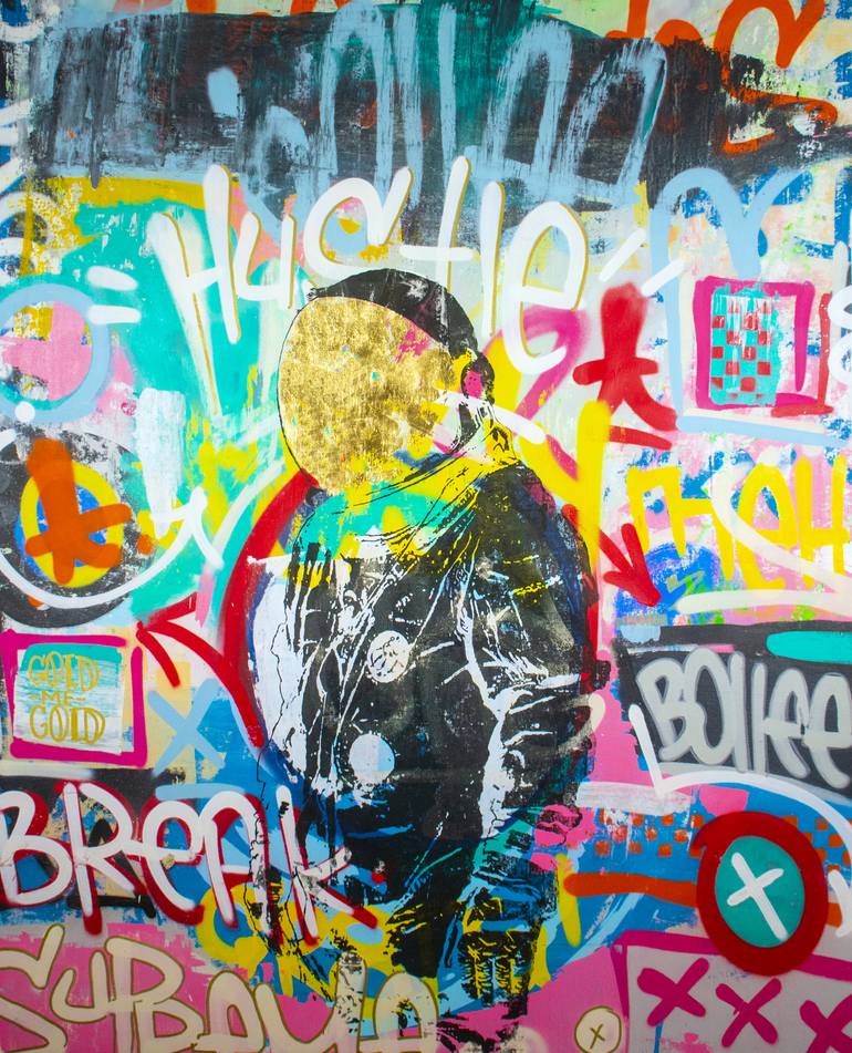 Shown at The Other Art Fair LA Titled “Gold Digger: Gold me Gold", this painting was inspired by ones journey of self wealth, self identity and the drive to be successful. Gold Digger is a metaphor for striving for ultimate success. A combination of acrylic, ink, spray paint and gold leaf on canvas...