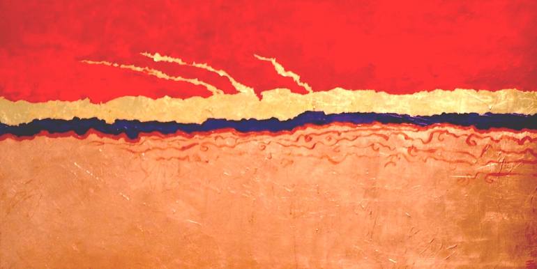This concept just appeared in my head one day. I thought it would make a power painting. It is great interest to me to see the different reactions of viewers. They are drawn to the heat of the red, the warmth of the copper foil color, the flame of gold and the deep purple. I like to work with mixed ...