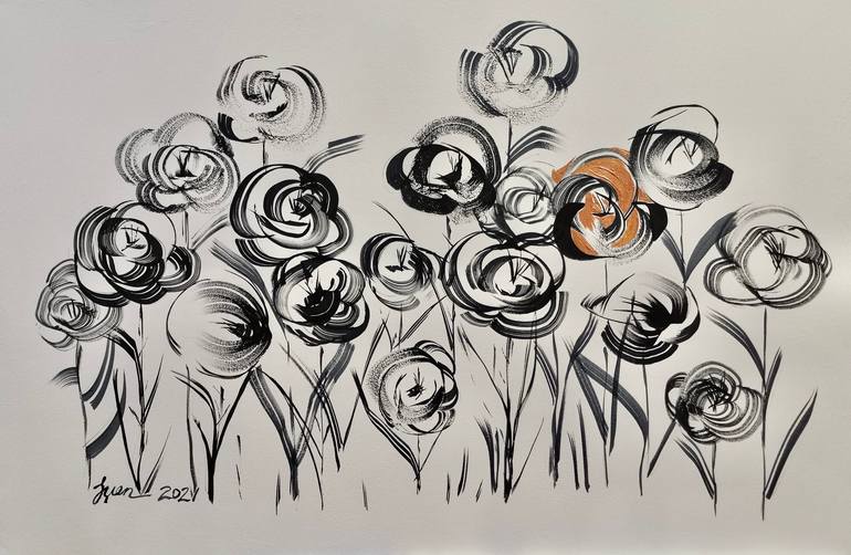 “Inspired by her family’s background in Chinese herbal medicine, Fuen creates calligraphic botanical paintings with dense, rhythmic compositions and bold mark making.” – Rebecca Wilson, Chief Curator for New Voice, Saatchi Art 2021 Special Edition Catalog. Fuen Chin is an artist who grew up in Kedah state, Malaysia. Her art takes inspiration from horticulture which is a nostalgic reflection of her childhood. Both her late grandparents were Chinese from Southern China with backgrounds in Chinese herbs and medicine, running a small herbal shop. It was there where Fuen learnt the importance of Chinese herbs and the stories around them. It is these stories and her visions about plants that provides an endless inspiration for the calligraphic floral paintings. Starting out as a self-taught artist, Chin eventually studied a Fine Art research degree at the Royal College of Art. She has worked on an art installation, citing the following response from the panel of judges: ‘We very much enjoyed your proposal and presentation and thought there were a lot of interesting possibilities that may emerge from your works.’ She continues to work and develop her calligraphic paintings using Chinese ink within a more contemporary context.
