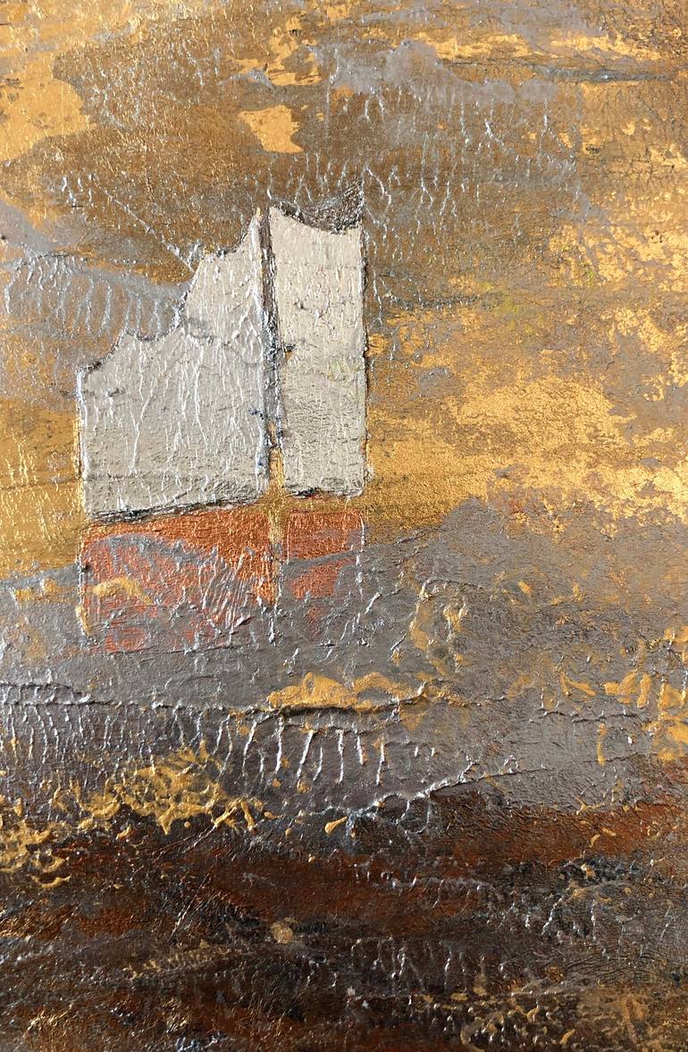 Living in the HafenCity of Hamburg I am in the lucky position to see the amazing Elbphilharmonie everyday. Its changes in appearance – because of the everything-reflecting glass-cube – are fascinating to me. In using metal leaf, I am catching this reflection. The picture is shining and reflecting...