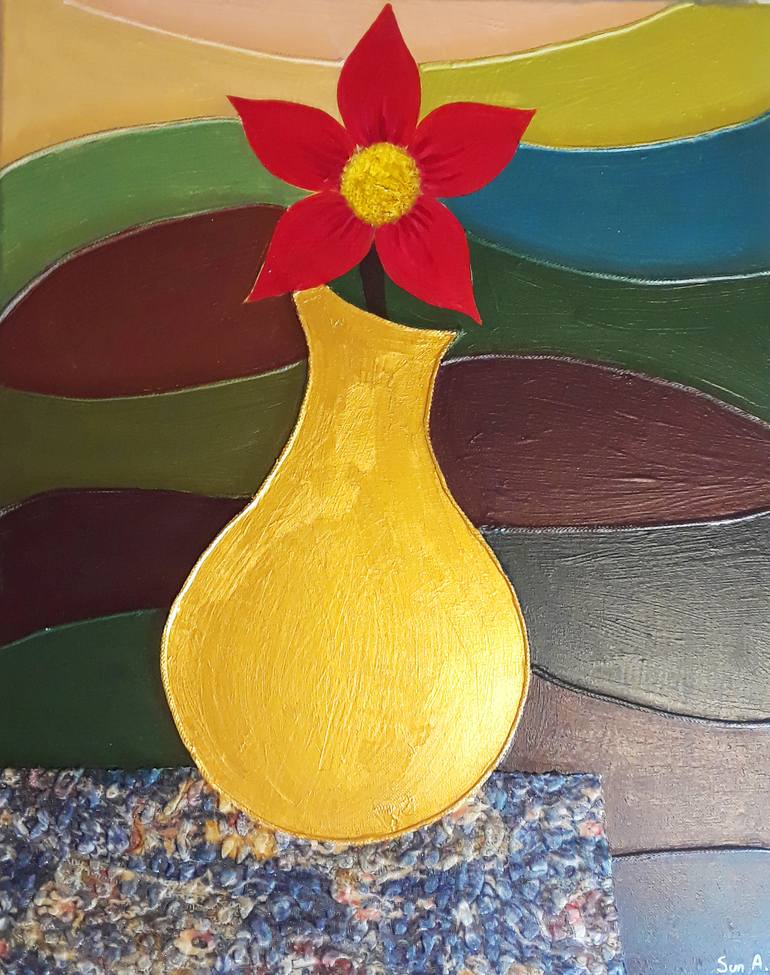 A whimsical mixed media artist who embraces the world, different culture, nature and people. studied Industrial crafts and graphic design influenced in her art and inspired by impressionism and cubism. She sees an object with dots, lines and shapes. Her colors show passion and energy. Her lines represent interest, excitement, adventure and diversity. currently living in peaceful island, creating art with painting and improvising music.