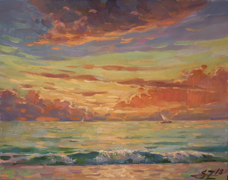 It was such gold-orange sunset that I felt that brightness of my colors are not enough to express the triumph of colors in nature. Please watch the video about my painting process on You Tube http://youtu.be/zQ3SJT-HQ_Y https://youtu.be/ZF3Q_AVqaIY