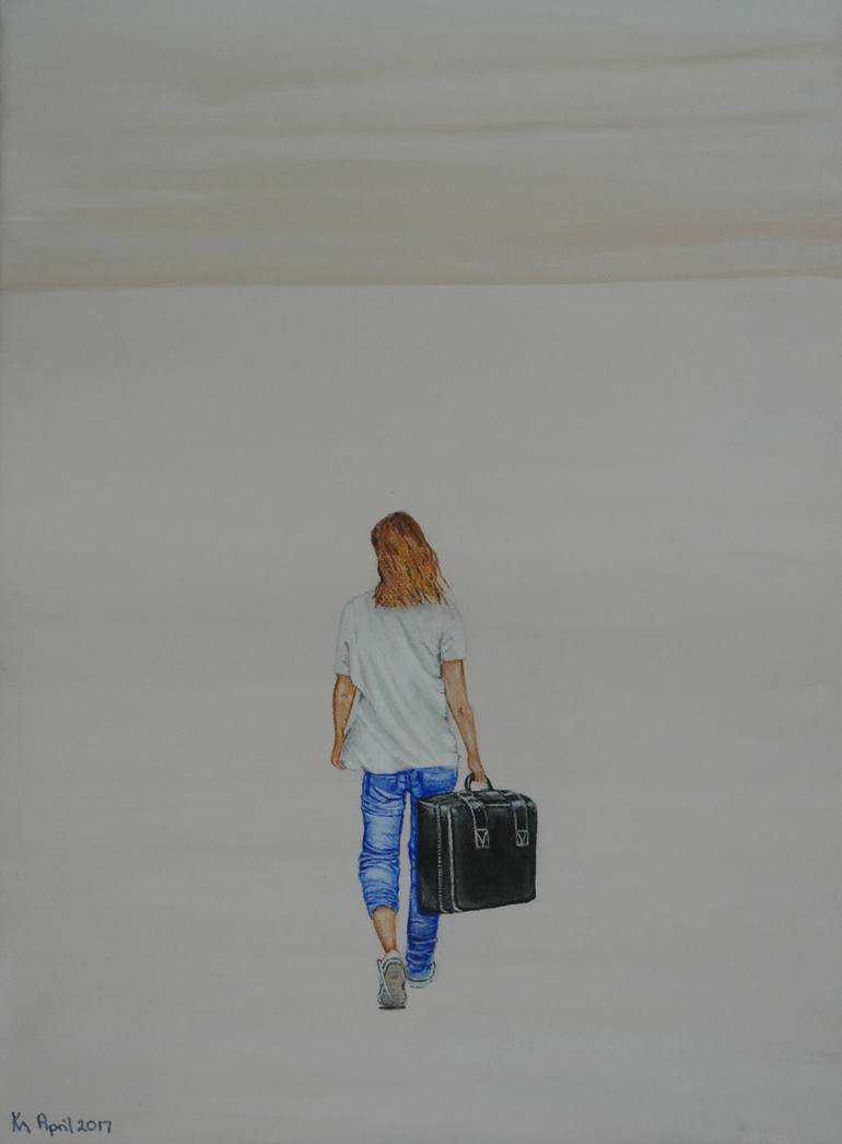 This was painted by one of Kim's alters Abi. The empty space around her portrays the sense of loneliness as she walks into the unknown.