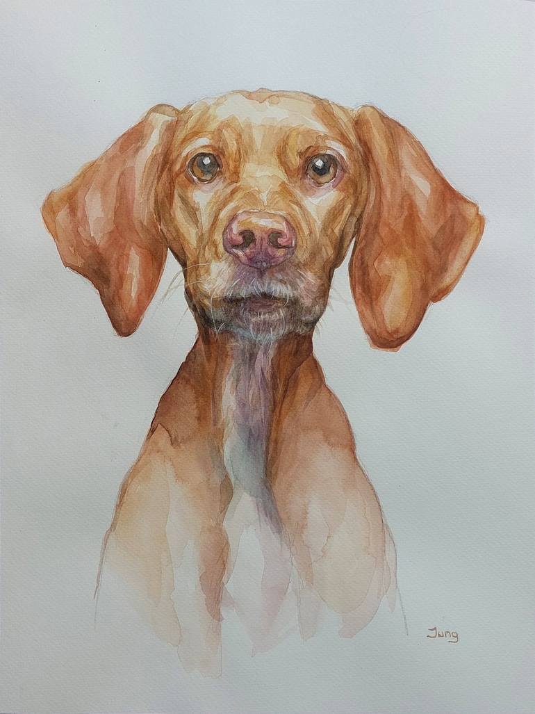 Dog portrait painted on Fabriano watercolor paper, 200gr heavy. Painting is dispatched within 7 working days and and carefully packed in tube. Signed on front and comes with certificate of authenticity.