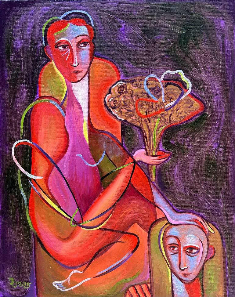 JJ Julia (Yuliya Pochynok) is an artist from Hungary. Born and studied in Ukraine, graduated from Lviv National Art Academy then moved to beautiful Budapest. JJ Julia had 2 personal and several group exhibitions. Her works are in private collections in many European countries, Canada, the United States and Asia (India). She explores woman's nature, femininity, emotions, forms and moods. Woman, a woman and nature and relationships between a woman and a man are her main interests. JJ Julia works mostly with oil paints on canvas, but experiments with acrylics and other materials. She tries not to repeat and copy herself, with every artwork JJ Julia invents some new approach, message, idea and style. JJ Julia bravely mixes abstract, expressionism, contemplation and humour, decorative elements and a combination of colours.