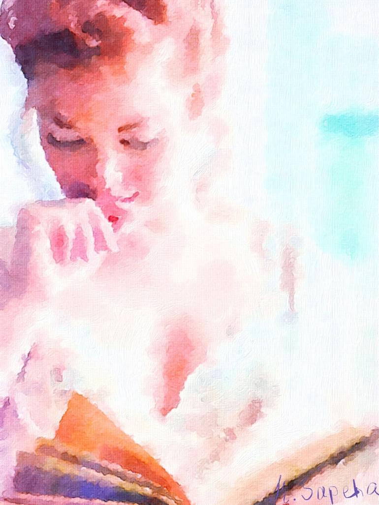 An original oil painting on cotton mix canvas. A soft portrait of a girl reading. The work is protected with UV varnish.