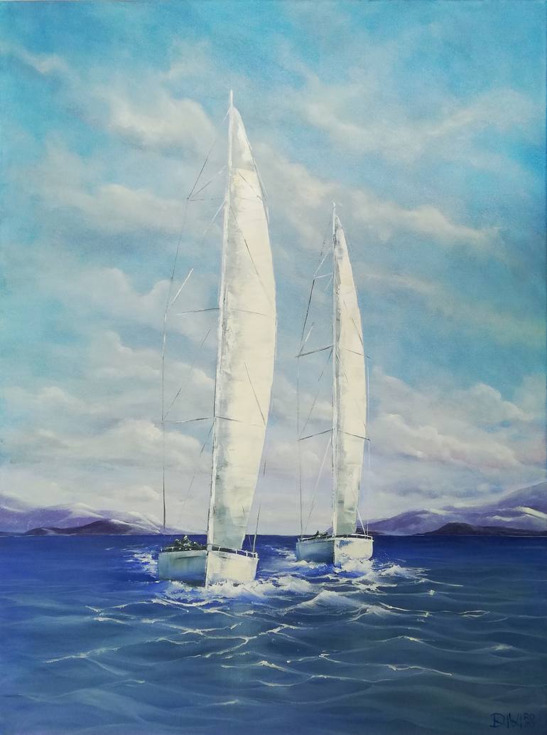 I drew this picture inspired by memories when I sailed in Greece, a wonderful time spent at sea and in various ports.This painting will give your home coziness and a great mood.