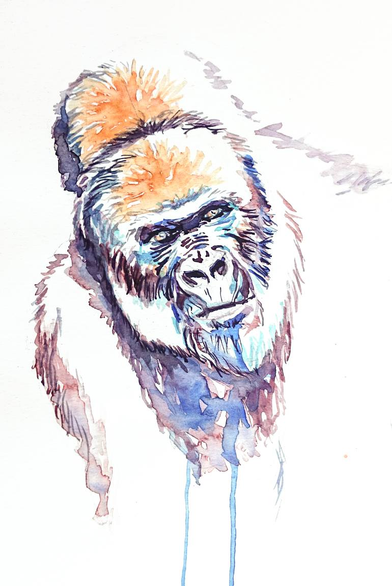 An emotion in the eyes of gorillas. I made this painting as a tribute to these animals.