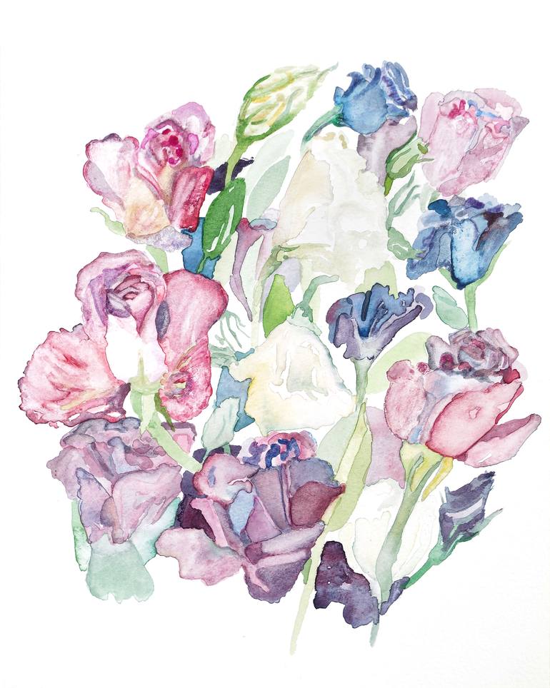 'Grace' expresses a sophisticated understanding of flowers and floral growth. The artist grew up with flowers in her environment from a young age, she is a florists daughter and fully trained in floristry. 'Grace' was created with flowers from a wedding. The beautiful mauve pinks and open flowers cr...