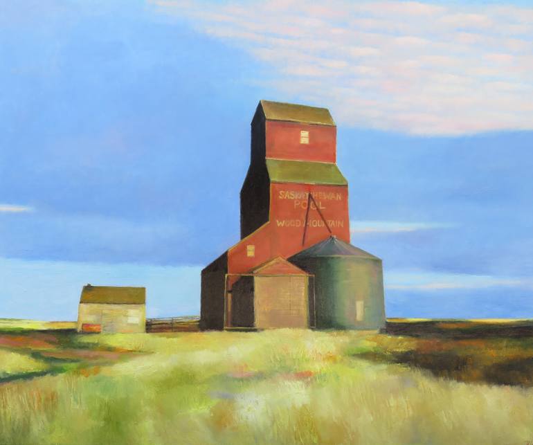 "Grain elevator in the evening sun" 30" X 36" oil/canvas 2017. (Sold.Private collection,Vancouver,Canada). This painting was inspired by majestic architecture of grain elevators in Western Canada.