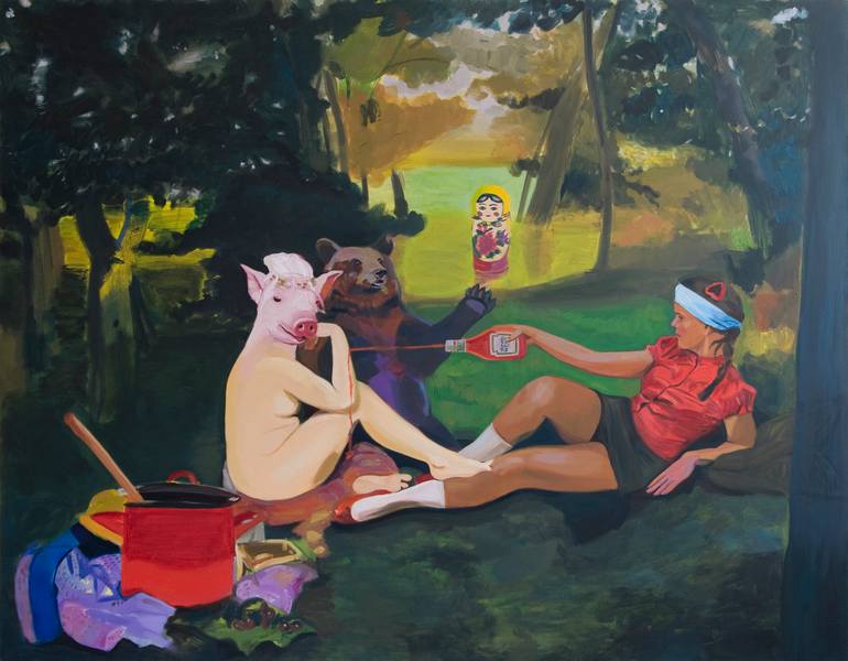 Paintin refers to the famous painting of Manet "Luncheon on the grass". It is from Trans-allegories cycle.