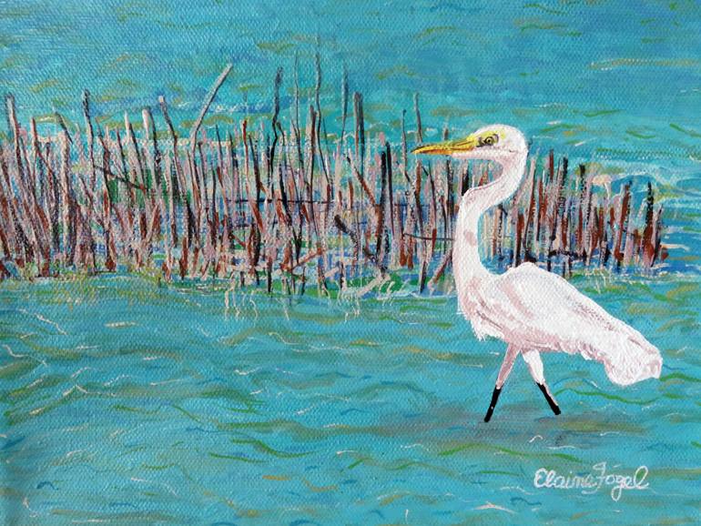 The graceful, all-white Great Egret stands over 3-feet tall, with an S-curved neck, dagger-like yellow bill, and long black legs. This cosmopolitan wading bird is a common sight in wetlands around the world, where it is also known as the Common, American, or Great White Egret, or White Heron. Origin...
