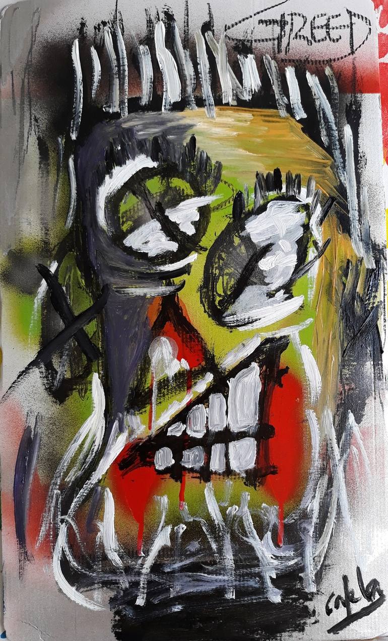 Greedy Old Bastard represents the greed in all of us but this particular figure realy exists and the grotesque face that represents a beautiful figure in real life is the distorcion of his values that tend to transform him into this horrible figure. I don't like to explain my work. It's my vision w...