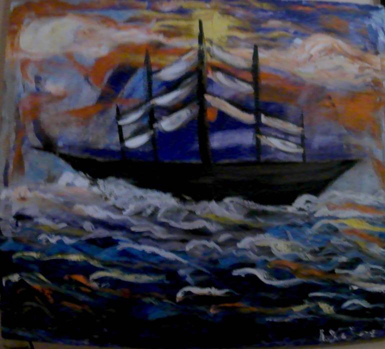 My favourite oil painting and I love its bright colours. Boats are very popular in Greece and a great theme for a painting! I also wanted to capture the colours of the Hellenic sky and the movements of the sea and waves!