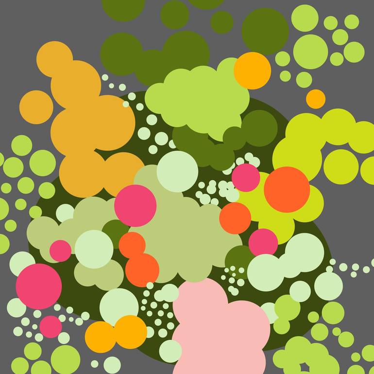 A vibrant interplay of organic forms and geometric precision, Green Geometric Abstract Bouquet bursts with energy through layered circular motifs. Inspired by the beauty of botanical arrangements, this abstract composition weaves earthy greens, soft pastels, and bold pops of pink and orange, evoking...