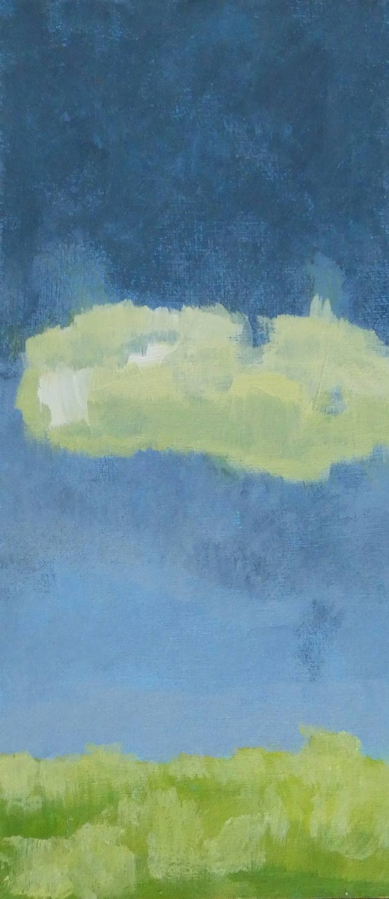 "Green cloud!" captures a moment of serene contemplation in nature. Imagine lying in a field of grass, gazing up at the sky, and witnessing the unexpected beauty of a green cloud drifting by. This abstract landscape evokes feelings of freedom, balance, and peaceful silence. Created with acrylic on ...