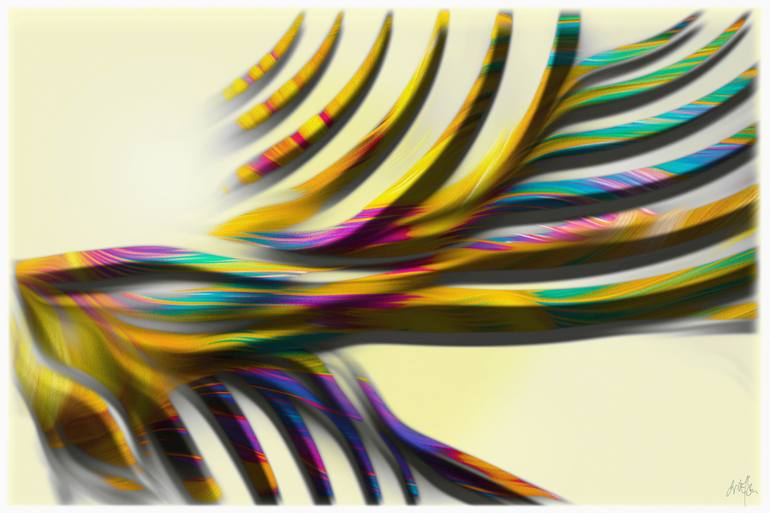This digital painting moves at the intersection of digital precision and organic expression. From a seemingly abstract formal language, an organic structure emerges, like a tree, a flame, or a stream winding its way through the image plane: "from here to Further." The source of inspiration—the philo...
