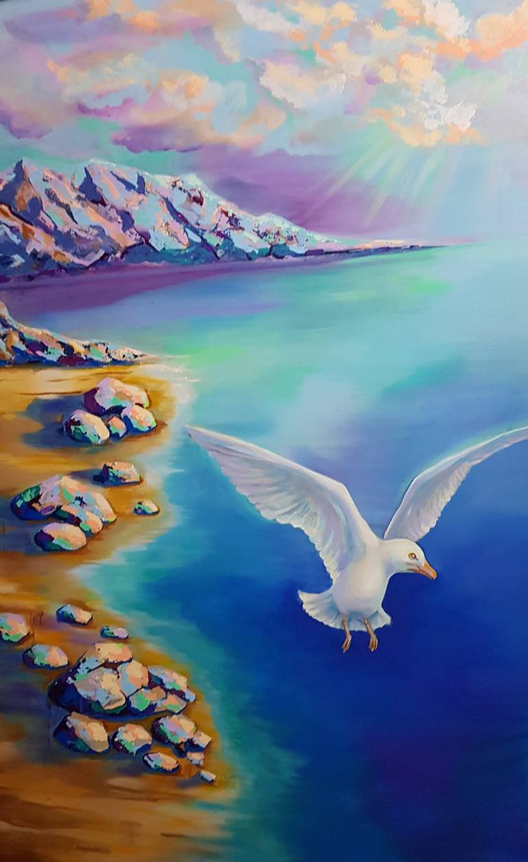 Hi my friend! Thank you for your interest in my work. This painting is painted in mixed media. Stones and rocks are painted using the impasto technique with a palette knife, in the form of a thick, juicy patch of paints to enhance the effect of light and texture. The sky and the sea were painted in ...