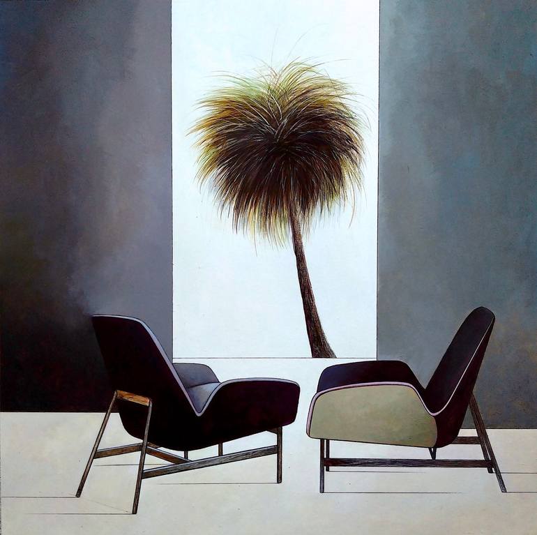Acrylic works, natural pigments, graphite tip and satin varnish. Anglo-Saxon painting inspiration: Edouard Hopper, David Hockney, Palm Spring, Cinema MEA's work can be defined as silent theater Theatre, because each of his canvases is like a "stage" setting, Silent, because silence is what is perc...