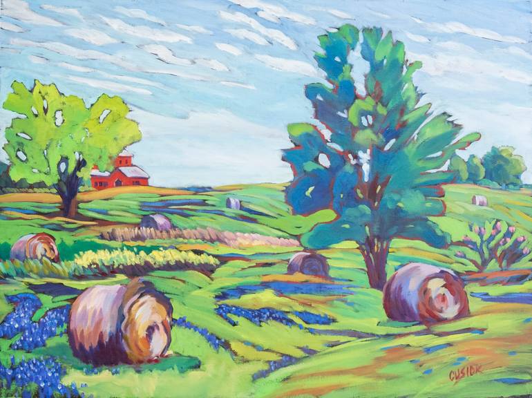 HAY WITH BLUEBONNETS Painting