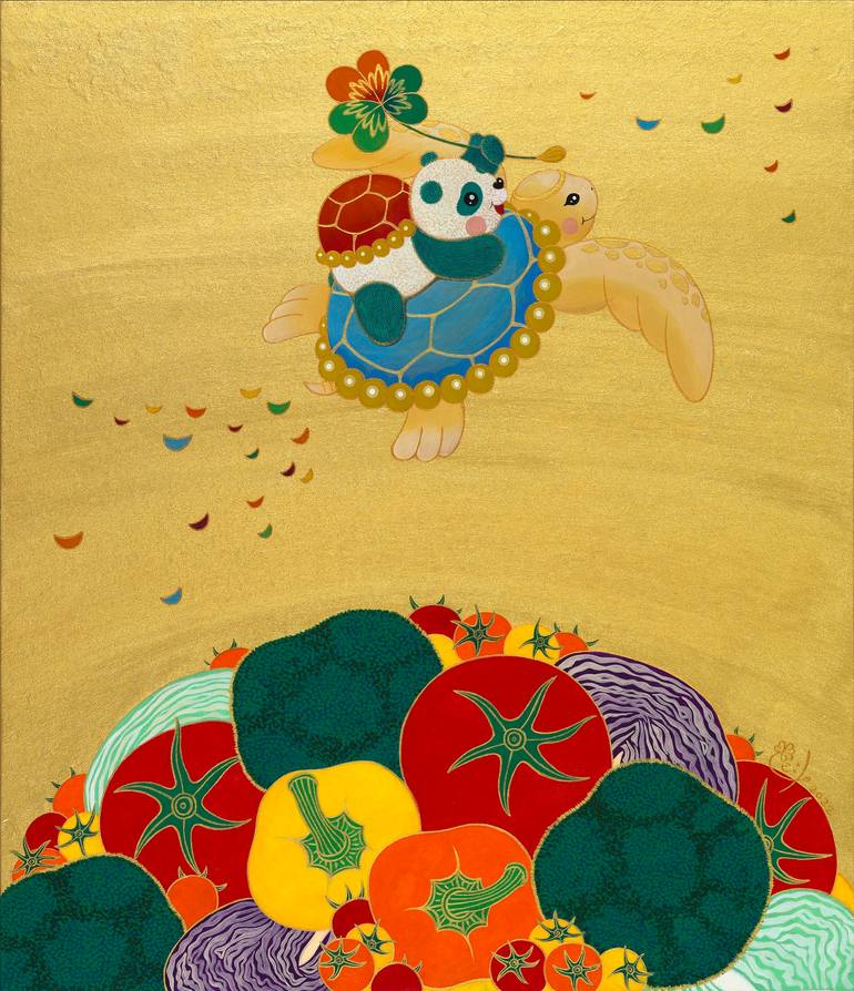 My artwork contains stories about values related to "happiness, dreams, health, and life" that I have felt and thought about so far in my life. My life values are as follows. 1) If your body and mind live a healthy day by day, it becomes a "happy life." 2) If you live a life without comparing yourself to others, without being impatient, and silently moving forward at your own pace, it becomes a "satisfactory life." 3) If you live with a positive heart and a grateful heart in everything, it becomes a "beautiful life." 4) If you focus on your current self and live with faith and confidence in yourself, it will be a wonderful life. 5) Life given to me is like a gift, and everything starts with my heart. In this way, I am expressing the materials related to my life values in my work. The panda, "Mongda" which appears in the artwork, is my most beloved animal and has a job as a delivery man who delivers happiness. Turtles also appear frequently, but in my work they are called 'Geobok.' The name is derived from Chinese characters 'geo' and 'bok', meaning 'big lucky lump'. Not only does it have the meaning of "long life," which is well known to us, but it also shows the importance of not being impatient in my work, but also moving forward with ease of mind at one's own pace. Fruits and vegetables mean a healthy life. Gift boxes also appear, which means that you should focus on yourself in the present (PRESENT) and live with gratitude every day because life is like a present (PRESENT). Things that can feel happy are not far away. It's always in my heart. If you let go of your vague worries and worries about the future that no one knows for a while and focus on your current "me" and live your life with a positive mind, there will be more and more days to face the happy world. I would like to share with those who capture and appreciate the whole world with a positive mind, away from the unstable mind full of worries and worries that I have as a modern person living in this world. I would like to present you with the emotion of "This is the moment" that appreciates works full of healthy and happy energy. I hope it will be a time for you to relax your mind for a while, as if you were having fun discovering treasures in "Finding Hidden Pictures" that you may have done at least once when you were young.