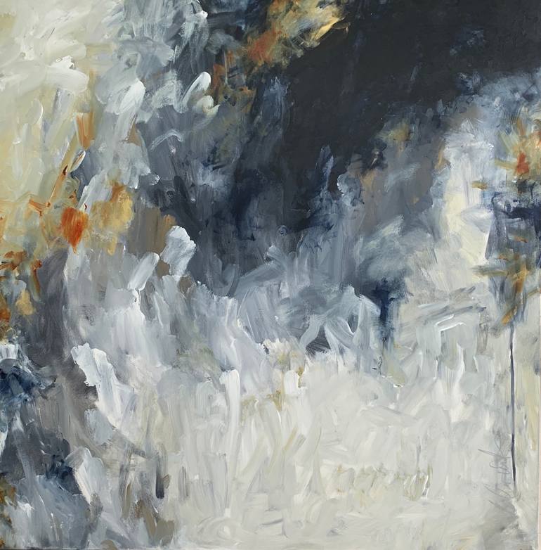 "Hearts On Fire" Finding joy is so very unique to everyone. A gestural completely intuitive abstract by Canadian artist Darlene Watson brings us into her love of art with her emotional and spontaneous brushstrokes invoking thoughts of Willem Kooning or Joan Mitchell. Warm gold, black, and grey with...