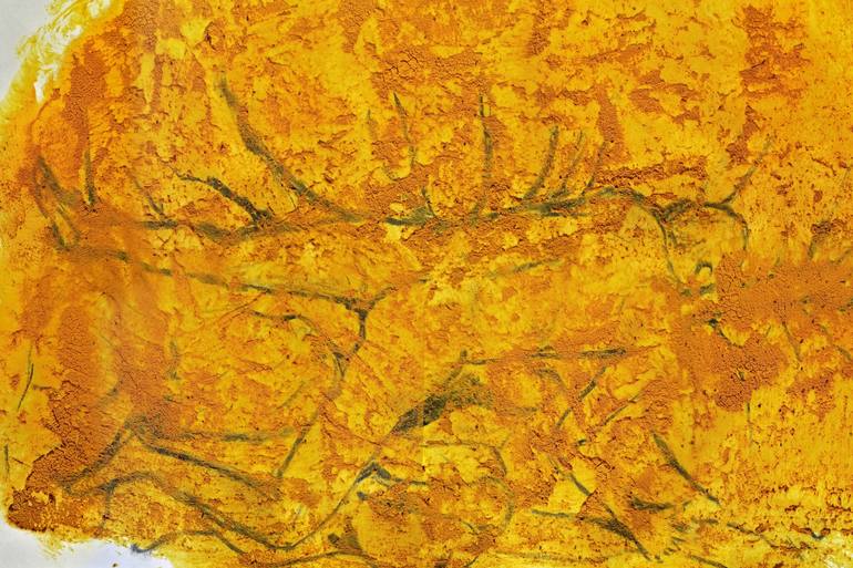 HIDDEN MALE-NUDE 002 shows an only slightly visible male nude outline. The charcoal drawing is hidden behind a bright yellow layer of paint. ______ The painting is part of the artist's extensive 'Lockdown-Cycle' - a large number of mostly abstract pictures that Kainhofer painted in the New Zealand ...